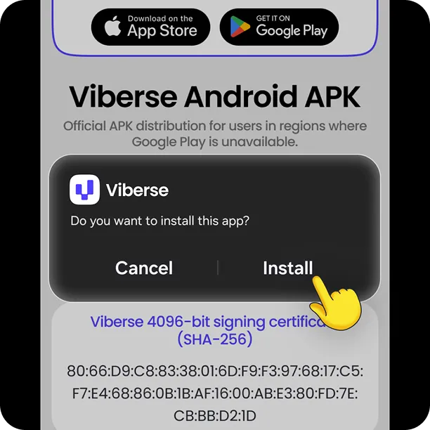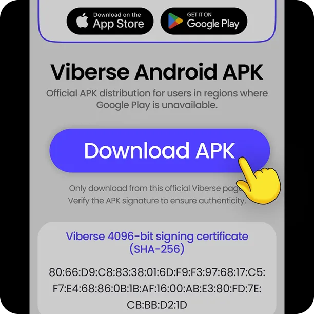 If Viberse is listed on the app store in your region or you’re on a compatible device, we recommend installing from the official store for automatic updates and the smoothest experience.